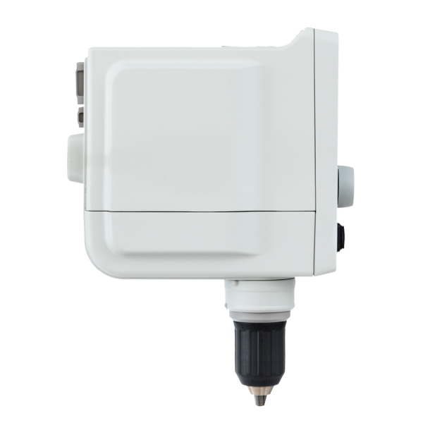 Alloggiamento in alluminio sigillato con grado di protezione IP54, mandrino senza chiave per un utilizzo facile con una sola mano, motore brushless per un funzionamento silenzioso e interruttore dell'alimentazione elettrica principale