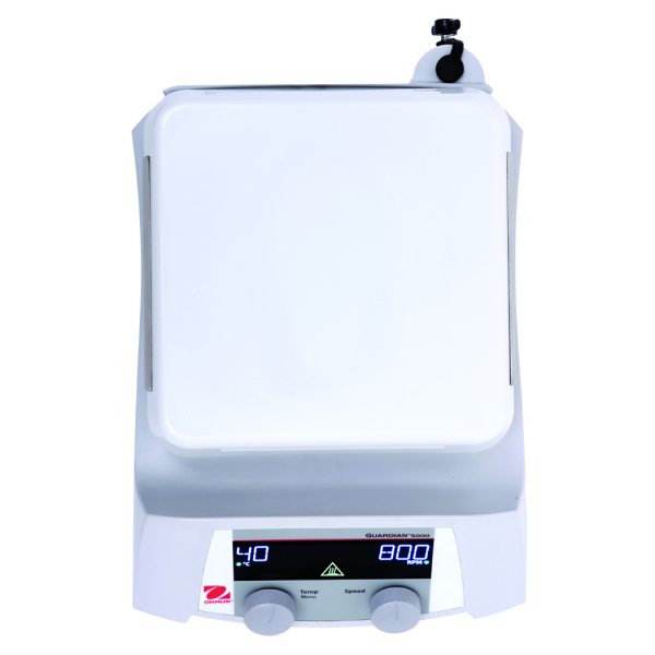 Connessione alla sonda, SmartHousingTM termoisolato e resistente agli agenti chimici, grado di protezione IP21, pannello anteriore in policarbonato, manopole di controllo, interruttore On/Off per scollegare il riscaldatore, supporto per l’asta di sostegno integrato, piastra in ceramica o in alluminio facili da pulire.
