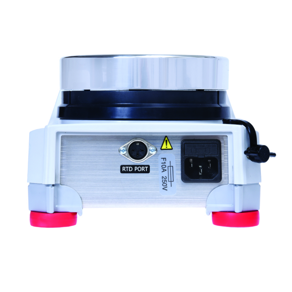 Connessione alla sonda, SmartHousingTM termoisolato e resistente agli agenti chimici, grado di protezione IP21, pannello anteriore in policarbonato, manopole di controllo, interruttore On/Off per scollegare il riscaldatore, supporto per l’asta di sostegno integrato, piastra in ceramica o in alluminio facili da pulire.