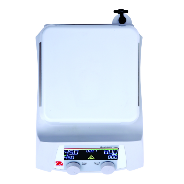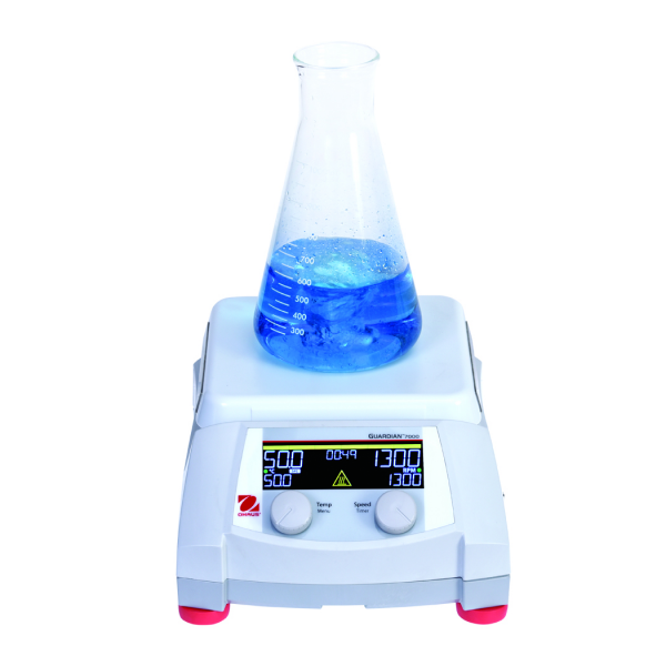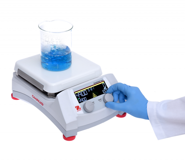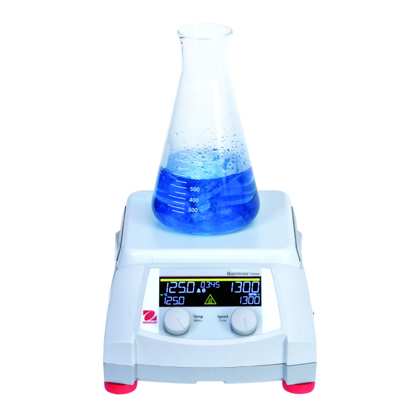 Agitazione da 60 a 1.600 giri/min, gamma di temperatura ambiente da +5 a 500 °C (piano in ceramica) o 380 °C (piano in alluminio), cavo di rete (incluso), sonda di temperatura RTD in acciaio inossidabile da 20,3.cm (8”), barra di agitazione rivestita in PTFE da 3,8.cm (1,5”), capottina di protezione in uso.