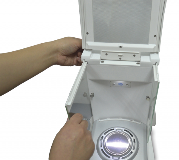 Base in metallo, chassis superiore in ABS, piatto in acciaio inossidabile, paravento in vetro antistatico con sportello superiore ribaltabile, capottina di