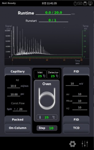 Display LCD touchpad intuitivo (10,1 ") che monitora i moduli (ingressi, rilevatori, forno) a colpo d'occhio e visualizza cromatogramma e programmazione della temperatura in tempo reale.
